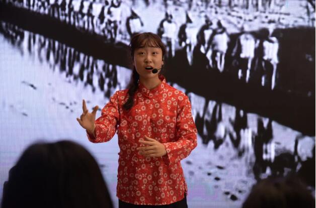 南京師范大學紅色歌謠實踐團隊的隊員們向大家分享《狼牙山五壯士》《我的戰友邱少云》《小英雄雨來》等紅色故事。