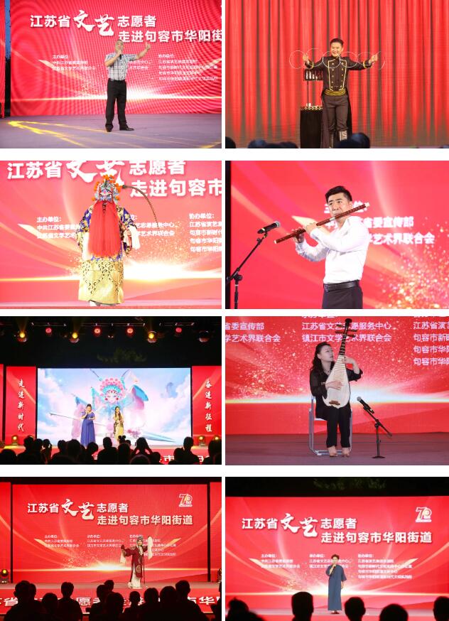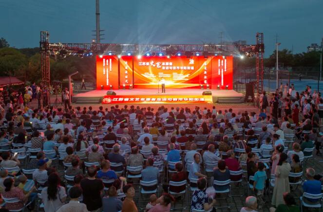 夜幕降臨,來自江蘇省文藝志愿者們通過京劇、魔術、樂器、相聲等形式,給群眾帶來一場精彩絕倫的演出。隨著樂曲響起,文藝匯演在京歌表演《我是一個中國人》中拉開序幕,鏗鏘有力的唱腔、激情豪邁的戲詞,讓全場觀眾熱血沸騰;魔術《五彩繽紛》,魔術師詼諧幽默的語言,充分調動了在場觀眾的好奇心,巧妙的魔術手法,贏得了陣陣掌聲;琵琶獨奏《彝族歌曲》,指尖撥動琴弦,跳動的音符,讓人聯(lián)想到“大珠小珠落玉盤”的詩句;京劇《穆桂英掛帥》演員通過“手眼身法步”,將戲曲中的人物演繹得淋漓盡致......一個接一個的節(jié)目,讓觀眾看得很是過癮。