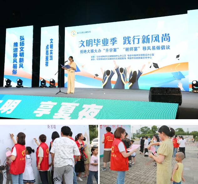 活動現(xiàn)場還進行了“文明畢業(yè)季 踐行新風尚”移風易俗主題倡議,作為一名文明實踐志愿者,同時也是一名高三畢業(yè)生的家長,王榮香帶頭宣讀倡議書,倡導以文明節(jié)儉的方式分享喜悅、感謝師恩,樹文明新風。