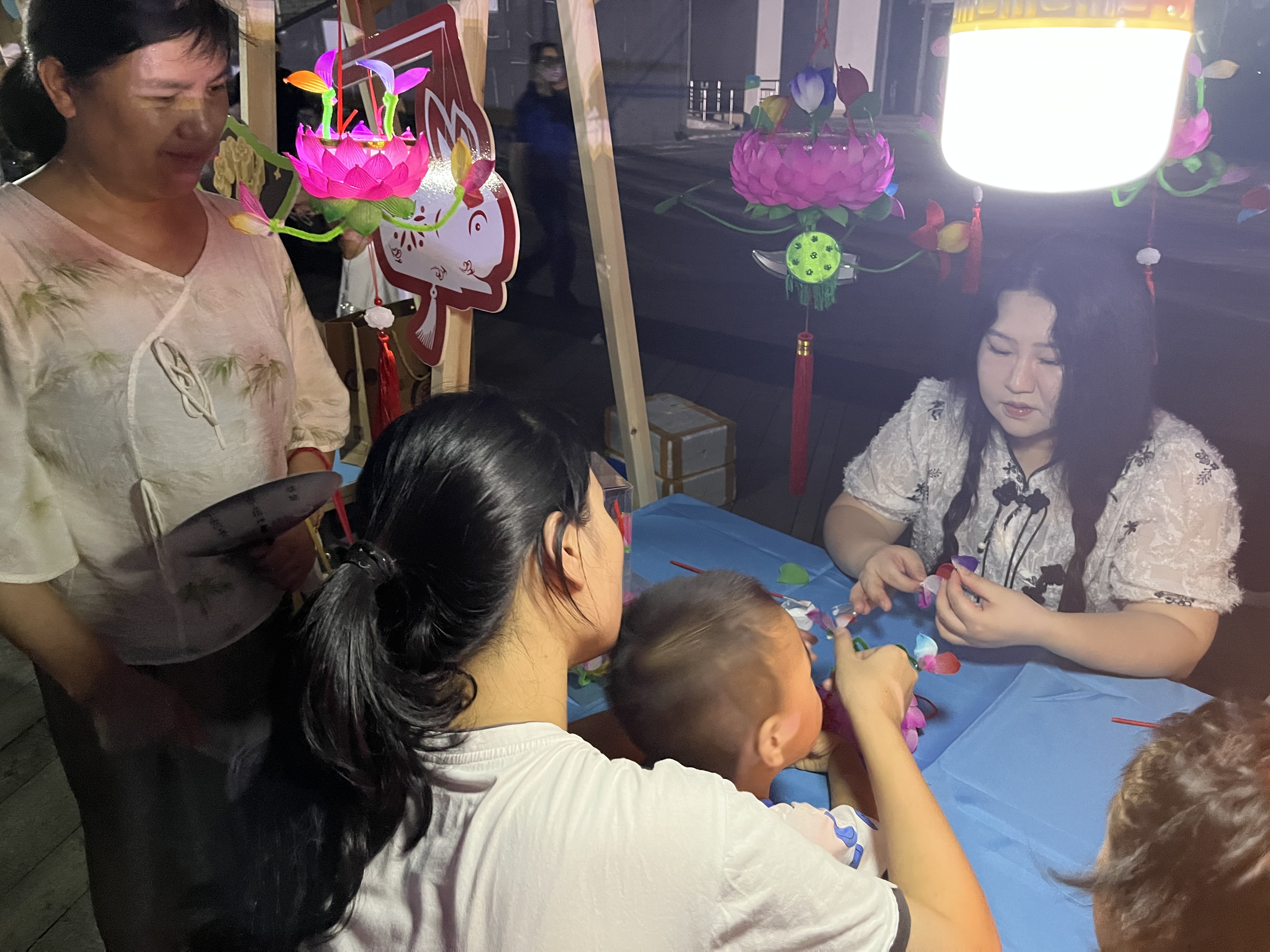 當天,由句容市委宣傳部、市精神文明建設辦公室、市文體廣電和旅游局等聯(lián)合開展的“‘句’文明 享夏夜”句容市民俗文化和非遺展演活動舉行。活動現(xiàn)場,前來納涼的市民們不僅可以欣賞民俗表演,還可以在非遺夜市上看非遺技藝展演、品句容傳統(tǒng)美食。8個國家級、省級、市級非遺項目攤位,為市民帶來剪紙、陶藝、傳統(tǒng)點心等非遺項目展示。