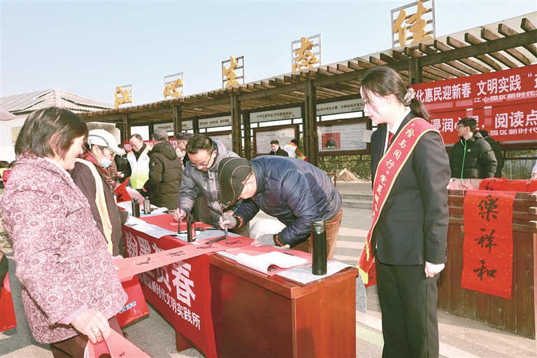 1月21日,鎮江市丹徒區江心園區在橘江里景區舉辦“文化惠民迎新春文明實踐‘益’起來”迎新春系列活動,現場設有寫春聯、繪年畫、公益理發、義診以及法律咨詢等眾多攤位。該活動豐富了群眾的文化生活,營造了喜慶祥和的節日氛圍,讓群眾在歡樂中迎接春節的到來。