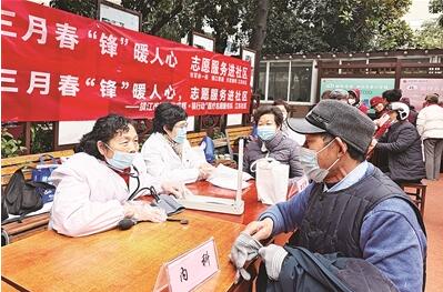 3月4日上午,盡管春寒料峭,京口區四牌樓街道江濱新村市民小廣場卻熱鬧非凡。由市退役軍人事務局直屬4個軍休所退休軍醫組成的“銀發戎輝·鎮行動”軍休醫療志愿服務隊一早就來到這里,舉辦“三月春‘鋒’暖人心志愿服務進社區”義診活動。隊員們為社區居民免費提供血壓測量、牙齒檢查、中醫問診等服務,并針對居民的健康訴求給出治療建議和健康指導。