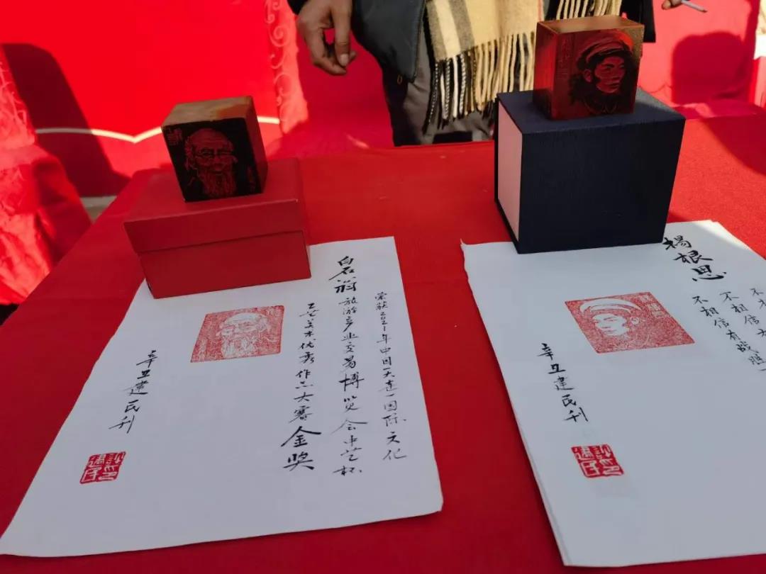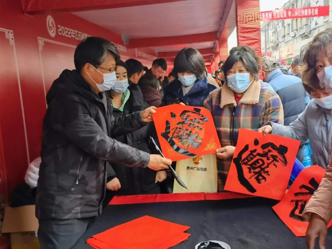 火紅的春聯、喜氣的福字,洋溢著新年的喜慶。紅色郵票、紅色文創作品,揭示了幸福來之不易。現場的農民群眾感受著黨和政府的關心,開開心心地將美好祝福帶回家。