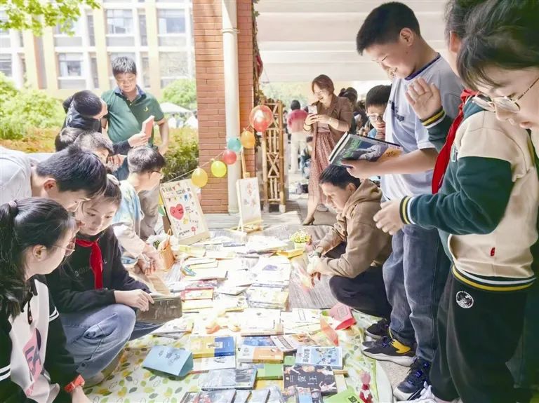 在濱江學校,五年級師生策劃舉辦了一場“親子閱讀,好書趕集”活動,同學們邀請爸爸媽媽作為“大讀者”前來趕集,以校家社共育,開啟春日悅讀之旅。實驗學校舉行“閱享風采 ‘電’亮未來”公益活動,引導少年兒童從好書中領略世界之美,為心靈注入正能量。