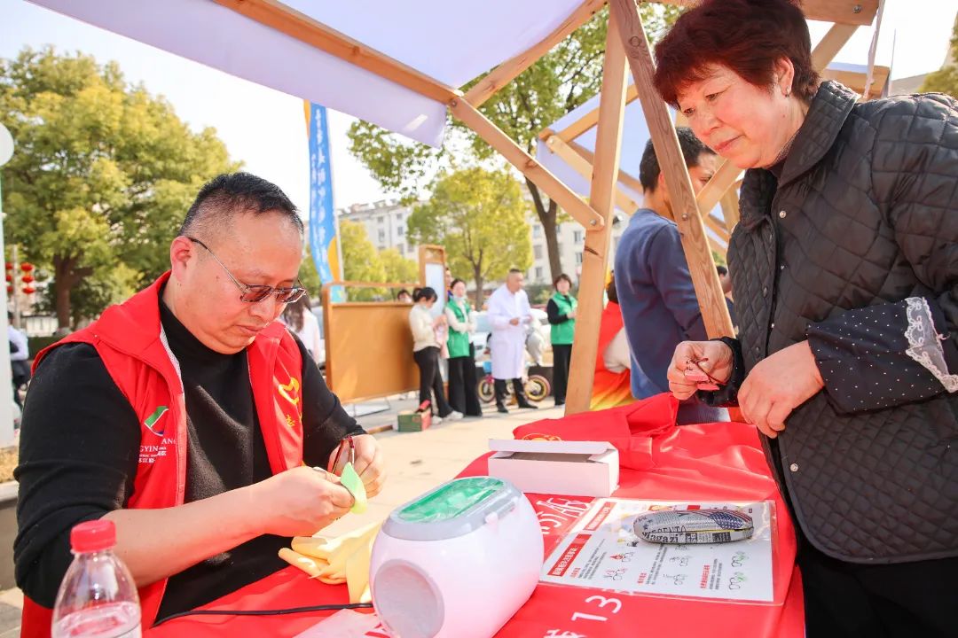 舞臺上,演員們用一個個精彩節目傳播文明風尚;舞臺下,一個個志愿者用行動踐行著志愿服務理念。來自靖江市168志愿者協會的15名志愿者分布在廣場各個區域,負責提供引導服務、維持現場秩序?!皬拈_攤到現在沒歇過手,能做點好事,幫到別人,心里就踏實。”義務理發攤位前,“馬洲之家”志愿者陳炳興忙得熱火朝天,嫻熟的手藝贏得居民們連連稱贊?!凹矣袃号睈坌闹驹刚邊f會現場發放并講解“黃手環”使用方法,呼吁社會關注老年人出行。