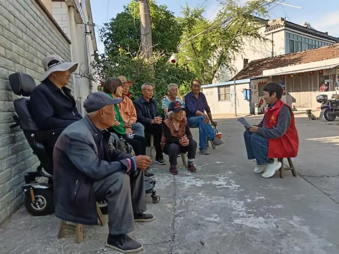 幾張小板凳,一個志愿者,便組成了周莊村最常見的文明實踐場景。見天氣正好,志愿者便來到村民們常常聚集閑聊的村頭空地,同大爺大媽們科普起健康知識。志愿者陳春燕講起這些高血壓、糖尿病等老年人常見疾病來頭頭是道,她用通俗易懂的語言,深入淺出地從成因、癥狀講到預防措施,大爺大媽們也紛紛根據自身情況,提出關于健康的困惑。一句句親切的“土方言”里,健康理念融入爛漫春色中。陳春燕說:“村里老年人多,常常同他們科普這些知識,也能提高他們的健康意識。”