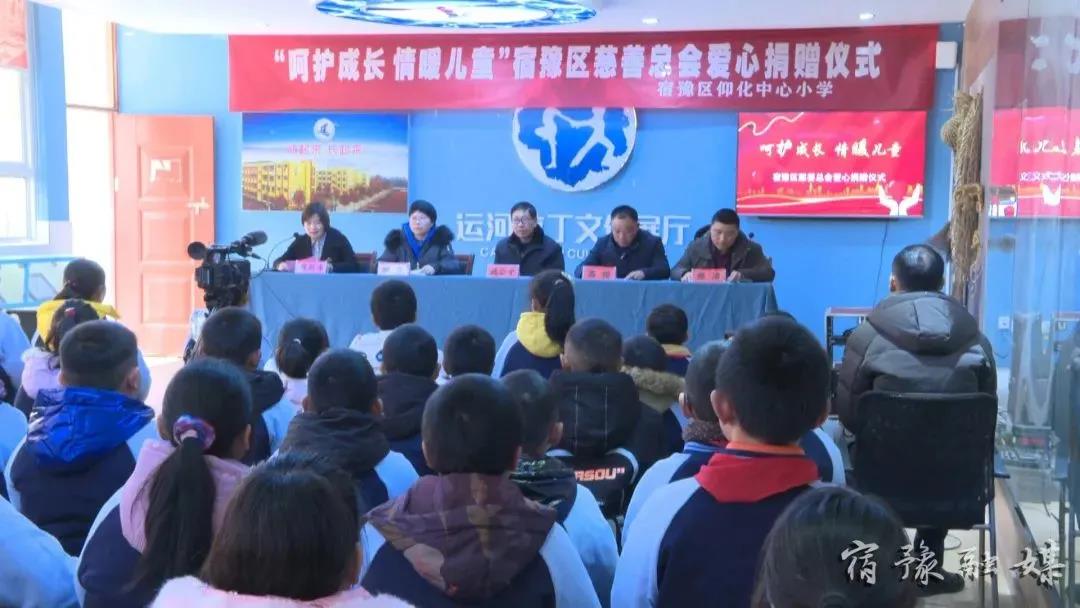 宿豫區(qū)慈善總會(huì)愛心人士走進(jìn)仰化中心小學(xué),為當(dāng)?shù)亓羰貎和蜕蠝嘏?/p>