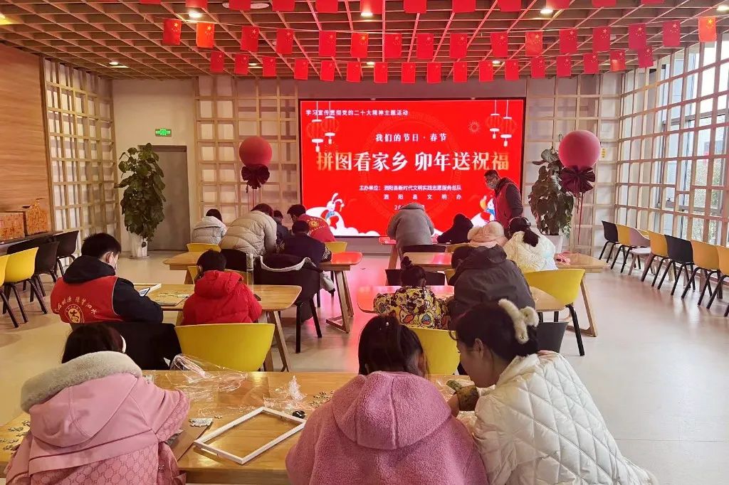 為營造歡樂祥和的節(jié)日氛圍,豐富群眾精神文化生活,激發(fā)群眾對家鄉(xiāng)的記憶情懷。1月22日,正月初一上午9點,泗陽縣新時代文明實踐中心市民講壇組織開展的“拼圖看家鄉(xiāng)”拼圖活動隆重舉辦,參加活動的市民們歡聚一堂,通過做游戲的方式為家鄉(xiāng)送上新春祝福。
