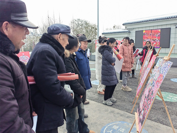 “今年的年味特別濃,年畫和打卡墻都很漂亮,借此機會,我們全家在打卡墻拍了一張特別有意義的全家福。”家住泗洪縣朱湖鎮朱湖社區的王阿姨滿臉笑容地說。為營造文明祥和的節慶氛圍,2月8日,朱湖鎮開展“賞年畫 過大年——喜迎新春 和美朱湖”文明實踐活動,在朱湖鎮新時代文明實踐廣場上展陳優秀年畫作品,讓群眾感受傳統民間藝術的魅力,用滿滿的煙火氣迎接新年的到來。