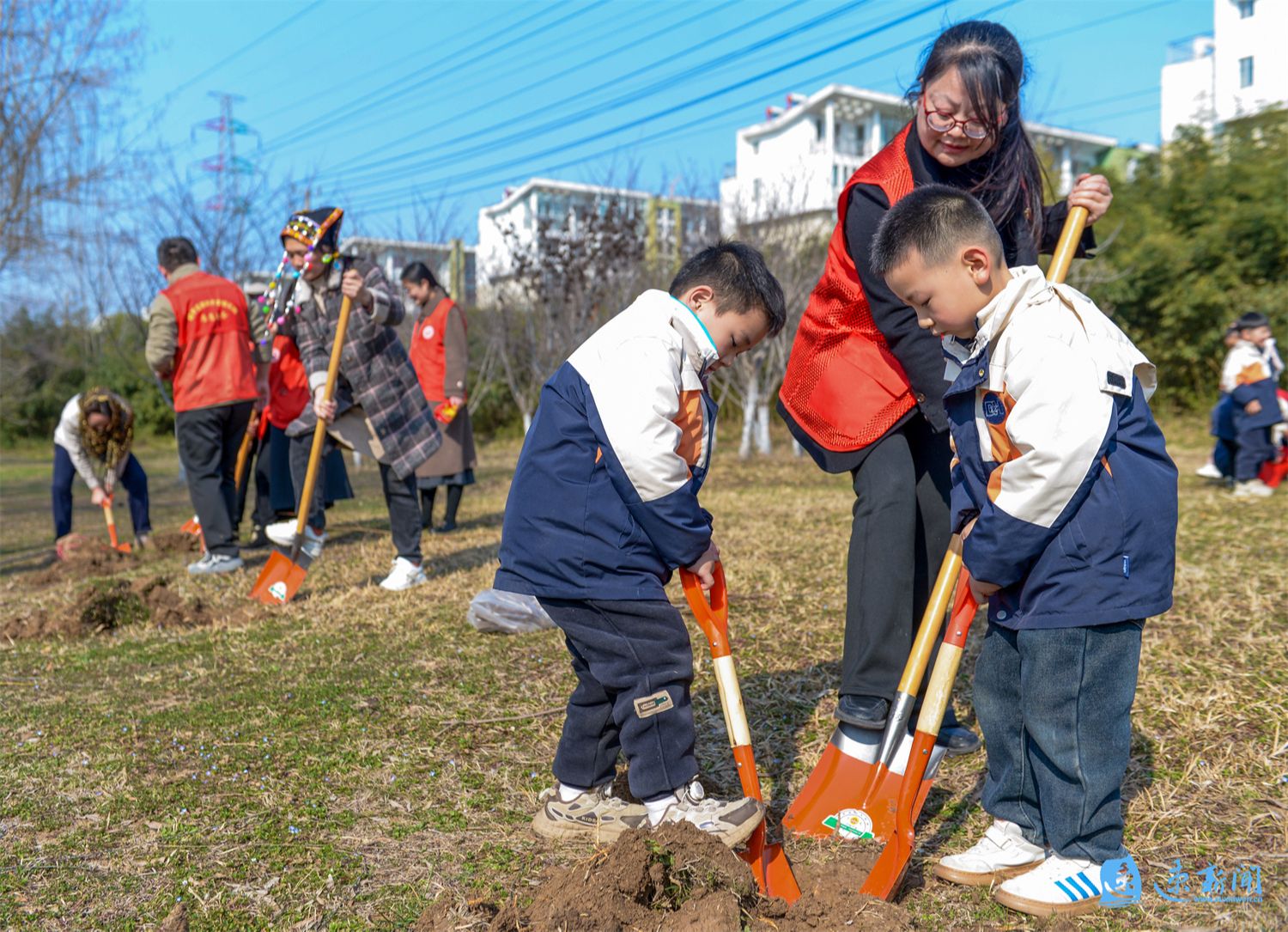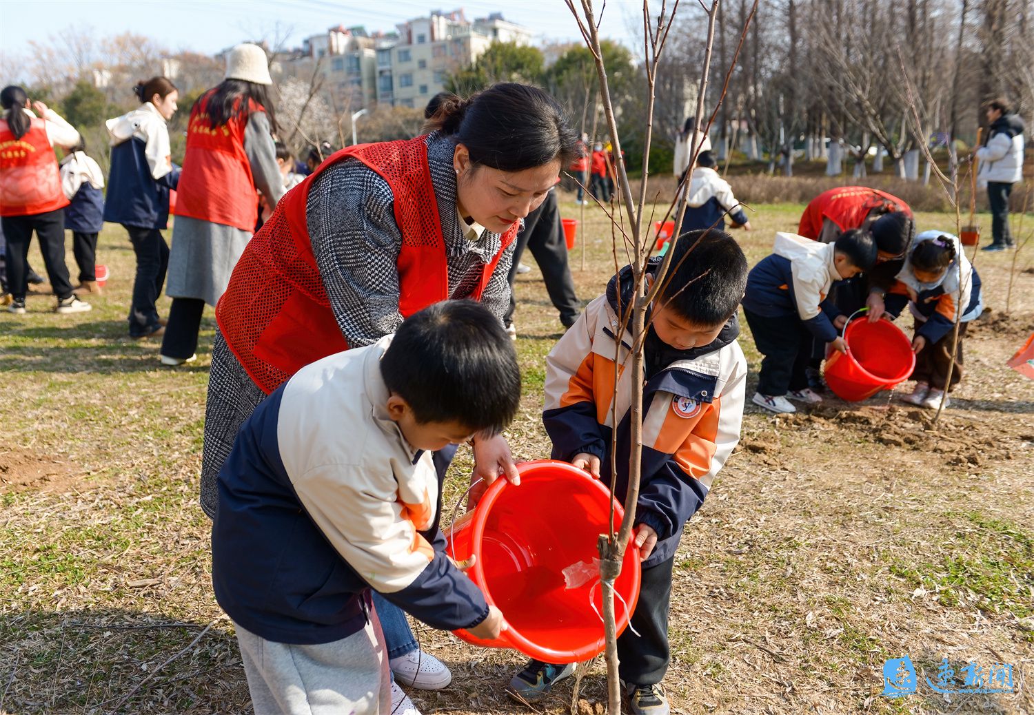 3月12日,宿遷經濟技術開發區黃河街道九鼎社區結合黨員冬訓活動,組織轄區內幼兒園小朋友到西民便河畔空曠處開展義務植樹活動,為河畔增添綠色,幫助小朋友從小樹立愛河護綠、保護生態的意識。