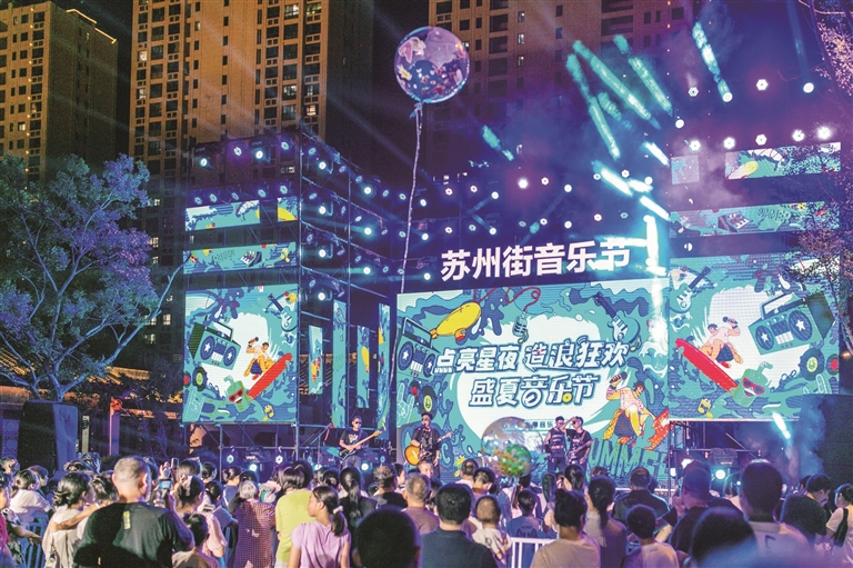8月2日,蘇宿工業園區蘇州街音樂節啟動,現場熱鬧非凡。市民到此看表演、逛市集、嘗美食,盡情享受夏日夜生活。
