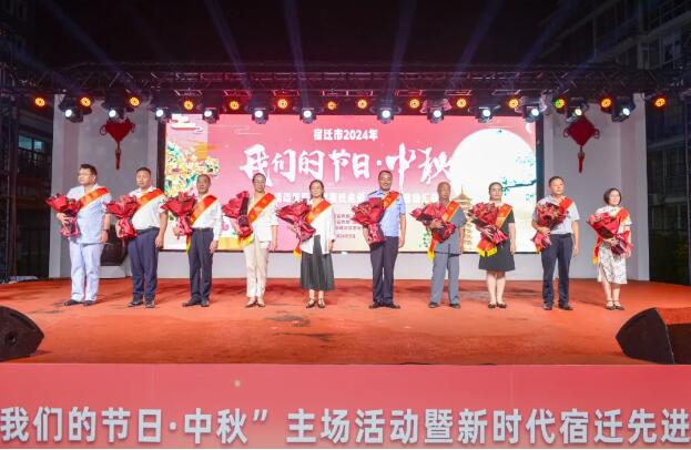 9月15日,宿遷市2024年“我們的節日·中秋”主場活動暨新時代宿遷先進典型事跡首場匯演走進宿城區項里街道項里社區。宿遷市10位先進典型代表相聚匯演現場,在前排落座觀看演出,并接受少先隊員代表獻禮與全場觀眾的崇高敬意。舞臺上,燈光璀璨,生生不息、歷久彌新的榜樣精神在傳遞;舞臺下,掌聲雷動,觀眾噙著熱淚感受這座城市最溫暖的力量。