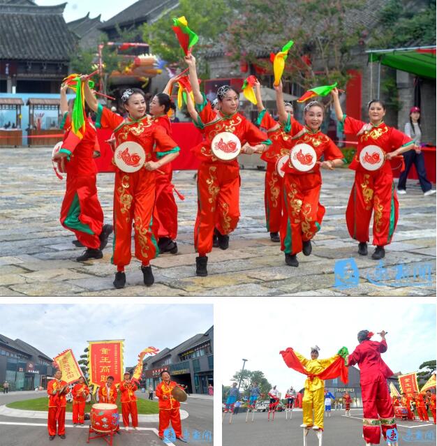 9月15日,在宿遷市區新盛街內,民間藝人表演漁鼓舞、董王高蹺等傳統民俗節目,以此來慶祝即將到來的中秋佳節,吸引大批市民前來觀賞,現場熱鬧非凡。景區還有20個傳統技藝、傳統美術、傳統醫藥類非遺項目進行集中展示,深受市民喜愛。