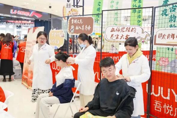 草藥香代替烤串香,八段錦代替廣場舞,養(yǎng)生茶飲代替奶茶飲料。暮色四合,華燈初上,泗陽縣吾悅廣場內(nèi)中庭化作一個熙熙攘攘的中醫(yī)藥文化夜市,泗陽中醫(yī)院的醫(yī)護人員挑燈“出攤”,讓市民們一站式攢夠中醫(yī)健康“養(yǎng)生局”。活動現(xiàn)場,中醫(yī)特色療法體驗區(qū)、中藥養(yǎng)生茶飲、香囊及養(yǎng)生錘展示,吸引著各年齡層的市民駐足體驗。艾灸、刮痧、推拿、針灸、中醫(yī)面膜等傳統(tǒng)療法的親身體驗,讓市民們感知中醫(yī)藥的神奇魅力。