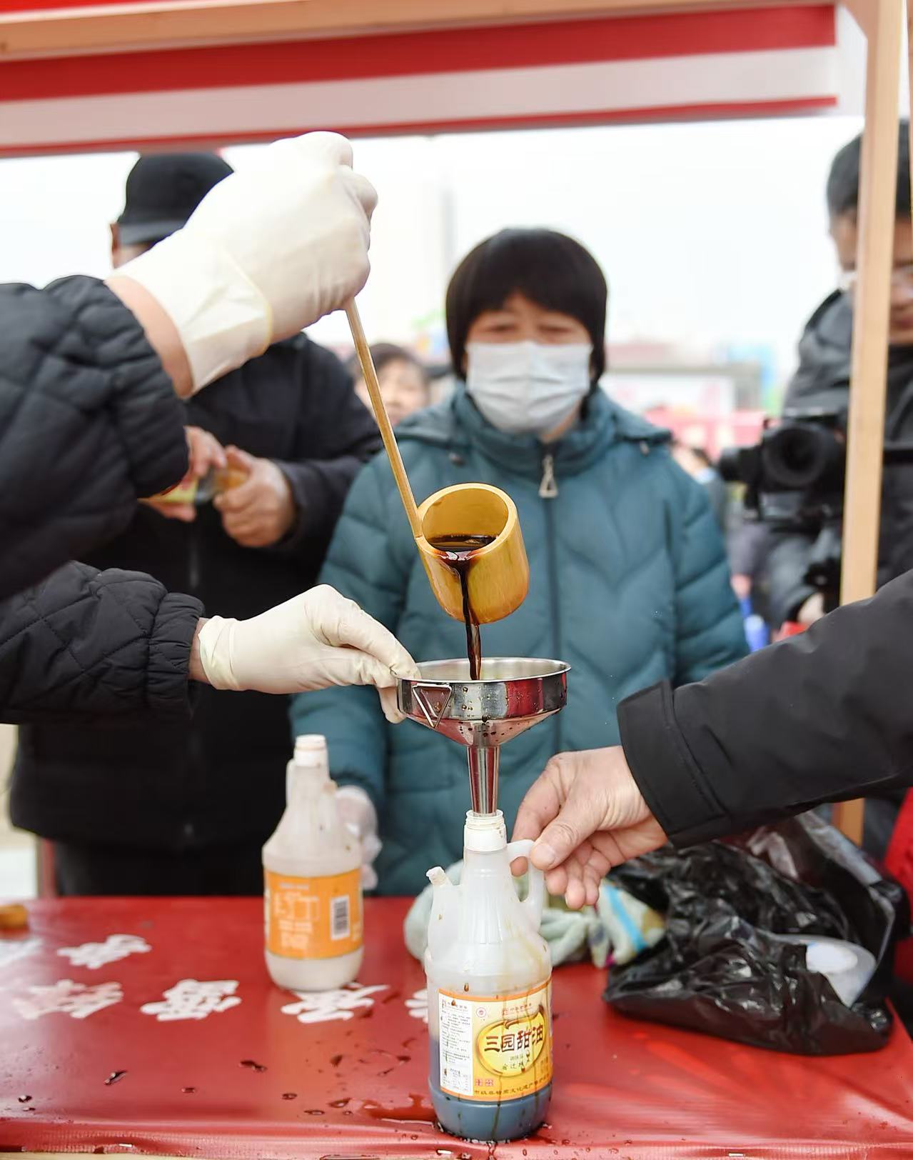 志愿者董尚輝一一接過空瓶,熟練地揚起甜油再倒入瓶中,與伙伴們配合默契,一上午下來,一缸甜油快要見底?!爸驹阜找呀洺蔀樯畹囊徊糠?,我不僅要堅持,還要帶動更多人。”董尚輝坦言,志愿服務是一種“能量交換”,受到他的影響,家人也紛紛加入志愿者的隊伍中,這令他很有成就感。