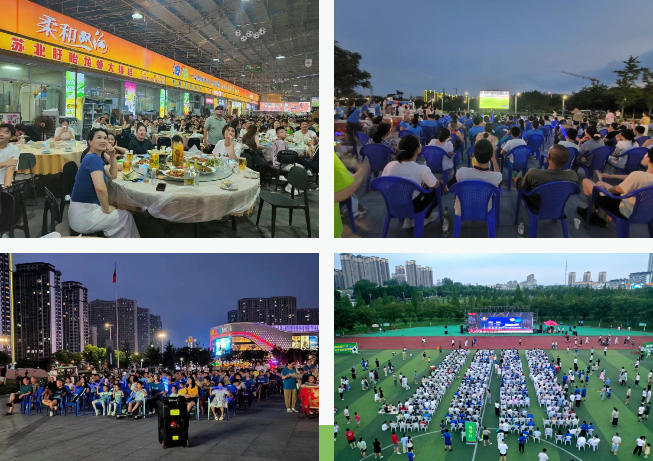 宿遷經開區在九鼎夜市和新時代文明實踐所站打造足球觀賽的“第二主場”。一邊是燒烤夜市里數百市民圍坐擼串、激情喝彩,一邊是新時代文明實踐所站內街坊鄰里納涼觀賽、其樂融融,共同升騰起的城市煙火。