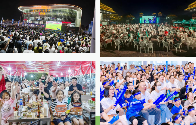 宿城區打造“1+N”直播觀賽矩陣,以新時代文明實踐中心為“核心據點”,金鷹寶龍商圈、項王故里景區等30余個點位同步直播賽事。不同年齡、不同職業的球迷們圍聚在高清大屏幕前為宿遷隊加油吶喊,用最熾熱的情感勾勒出夏日最燃的“星空球迷派對”圖景。