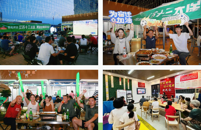 泗洪縣時代文明實踐中心與青陽街道新時代文明實踐所聯合打造“新星夜市”“老五金廠1968創意街區”“全民健身中心”“溧河洼露營基地”四大沉浸式觀賽點,廣大球迷朋友們在“享精彩賽事、品啤酒龍蝦”中感受獨屬于夏日的激情浪漫。