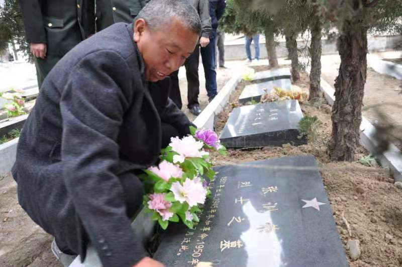 “您離開家鄉76年,已長眠在外71年,現在終于找到您了,大爺(方言大伯之意),您回家吧!回來看看咱家鄉的變化……”在烈士張訓榮的墓碑前,沛縣鹿樓鎮高鵬莊村村民張清志眼含熱淚,一邊擦拭墓碑一邊念叨著。在沛縣人武部不懈努力下,烈士得以魂歸故里,烈屬得以找到親人。