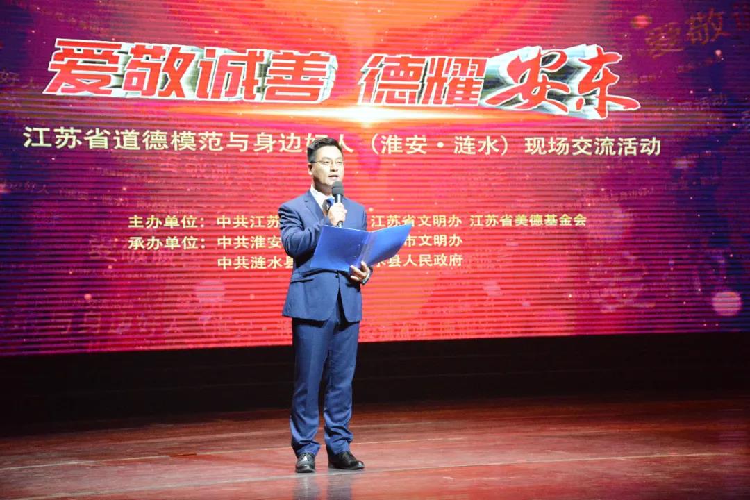 淮水川流不息,五島碧波蕩漾。這里是千年古城、紅色熱土,新時代文明實踐的主旋律正在安東大地恢弘唱響。文明播撒芬芳,傳遞大愛無疆,這里是文明之城、厚德之鄉,愛敬誠善的旗幟在每一個漣水人的心中高高飄揚。5月29日下午,“愛敬誠善·德耀安東”——江蘇省道德模范與身邊好人(淮安·漣水)交流活動在縣大劇院舉行。活動由省委宣傳部、省文明辦、省美德基金會主辦,市委宣傳部、市文明辦和縣委、縣政府承辦。