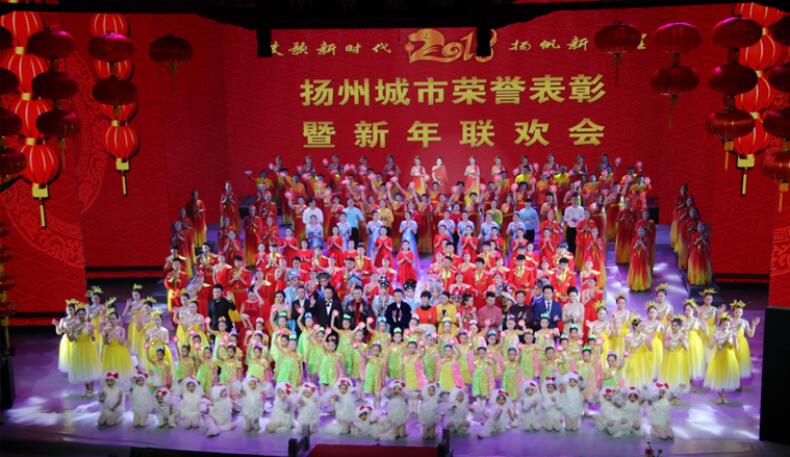 2020年1月25日晚,揚州市舉行2019城市榮譽表彰暨新年聯歡會,為“揚州市十大功臣”“十大揚州好人”“十大揚州大工匠”頒獎。在江蘇省運會會歌《所有人都成功》的旋律中,來自社會各界的先進典型走上領獎臺,接受全市人民的崇高禮遇。