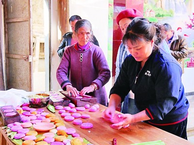 云南省騰沖市清水鄉(xiāng)中寨司莫拉佤族村李發(fā)順的母親和妻子在做飯米粑粑。資料圖片