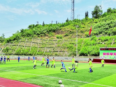 陜西省平利縣老縣鎮(zhèn)中心小學(xué)的學(xué)生在踢足球。資料圖片