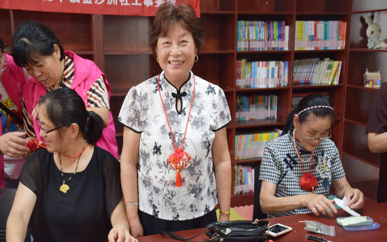 年輕時(shí)做過(guò)裁縫的陸阿姨,針線技藝相當(dāng)了得,她也充當(dāng)起了臨時(shí)老師,給其他人傳授一些小技巧。現(xiàn)場(chǎng),陳阿姨拿著手里的兩個(gè)香囊說(shuō):“回家讓老伴兒也戴一個(gè)!”