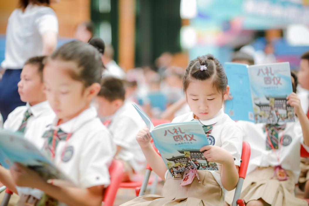 文明是一盞照亮前方的明燈,禮儀是一份源自心靈的修養。活動現場,一年級新生們手中都拿到了散發著墨香的省編《“八禮四儀”養成教育讀本》,孩子們也以童謠歌舞的形式,敘述文明禮儀基本規范,展現出青少年從小學禮儀、知禮儀、行禮儀,爭做新時代好少年的良好精神風貌。學校高年級同學也給新生們送來了滿滿的祝福。