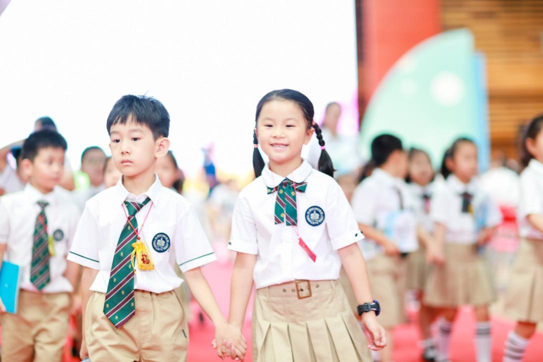 儀式尾聲,學校六年級學長和一年級新生大手牽小手共同穿越啟蒙之門,開啟美好的小學生涯。