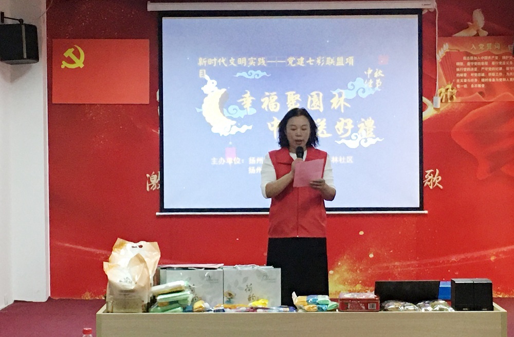 9月25日,揚(yáng)州市景區(qū)志愿者協(xié)會(huì)、晗韻志愿者協(xié)會(huì)服務(wù)隊(duì)等志愿者組織“公益集市 愛心匯聚迎中秋”活動(dòng)。志愿者走進(jìn)老黨員和特困家庭、頤養(yǎng)社區(qū)等,為老人和特困家庭送上中秋月餅、大米、食用油、牛奶等節(jié)日禮品。
