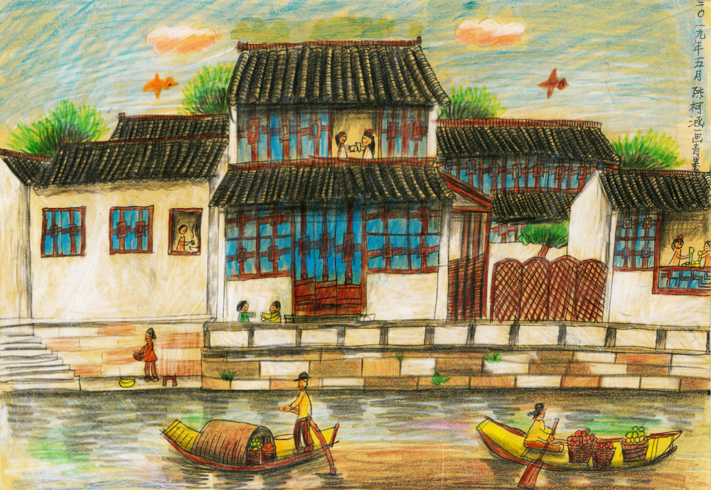 作品介紹:古老的運河是常州的母親河, 人文資源豐富, 名勝古跡眾多, 是一部承載常州歷史文化的寶典。運河孕育了我們,隨著歲月的變遷變得斑駁,如今,我們把滄桑的運河變得更美麗了,到處都是綠綠的樹、清清的水、姹紫嫣紅的花。瞧,一到傍晚,運河邊上圍滿了人,有釣魚的,有跳繩的,有跳廣場舞的……歡聲笑語熱鬧極了!