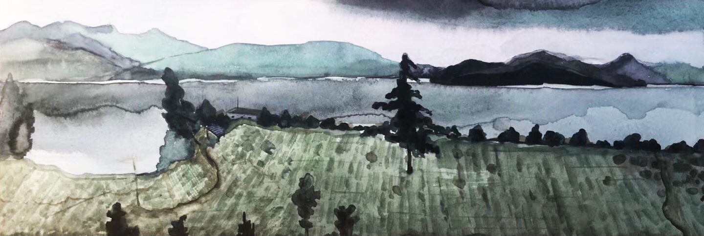 作品介紹:畫面描繪了家鄉(xiāng)美麗的河邊景色。綠水青山,秋高氣爽,景色怡人。