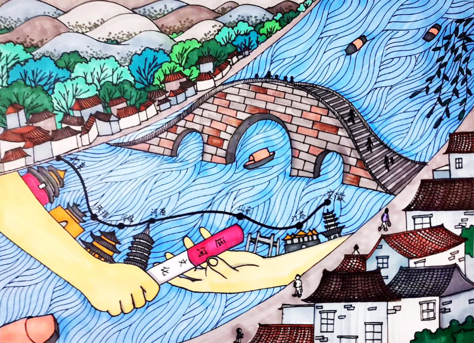 作品介紹:南京既是大運河的催生地,又是大運河的參與地;既是大運河的復興地,又是大運河的共榮地。南京與大運河既共生共榮,又休戚與共;既若即若離,又水乳交融。南京的繁榮興盛離不開大運河的長年滋養(yǎng),大運河的輝煌榮光更有南京的無私奉獻。作為一名南京小朋友,我希望我們的家鄉(xiāng)南京和大運河的明天會更好。