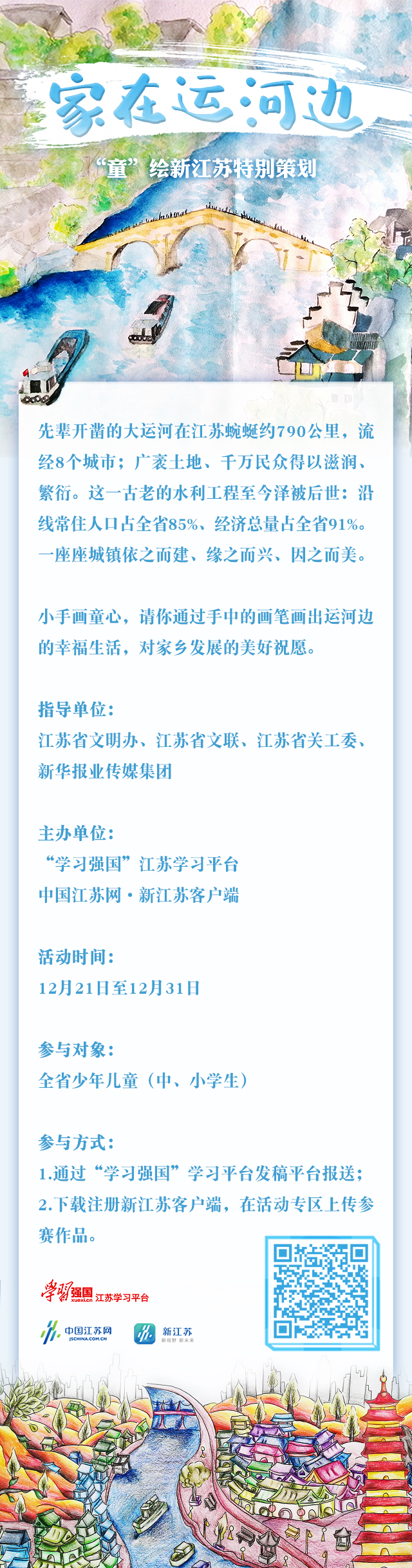 “寄語飛南歸北雁,大河頭尾是家川。”“童”繪新江蘇特別策劃佳作選——家在運河邊帶您領(lǐng)略運河之美。