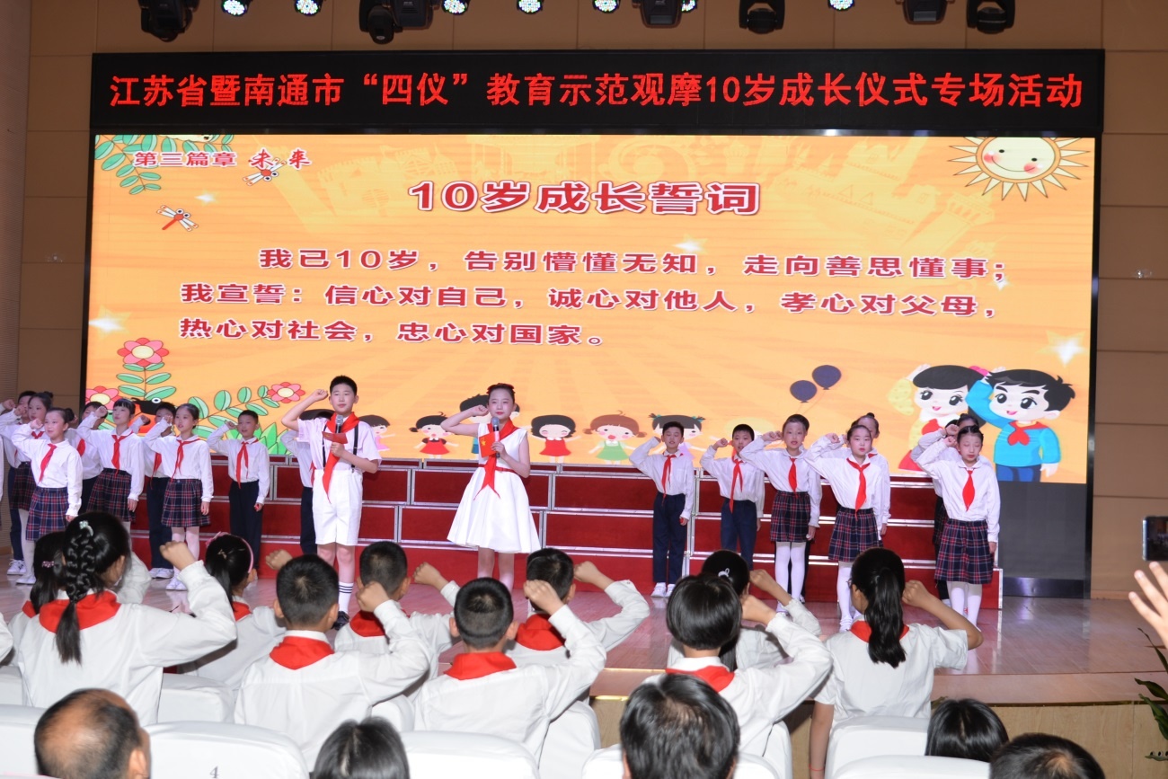 “當十歲遇上百年,時光在此刻書寫成長;當十歲遇上百年,這場成長禮意義非凡。”6月1日上午,江蘇省“四儀”教育示范觀摩活動10歲成長儀式專場在如東縣實驗小學舉行。省市文明辦負責同志與家長、老師以及社會各界代表共同觀摩活動,見證孩子們的美麗成長。