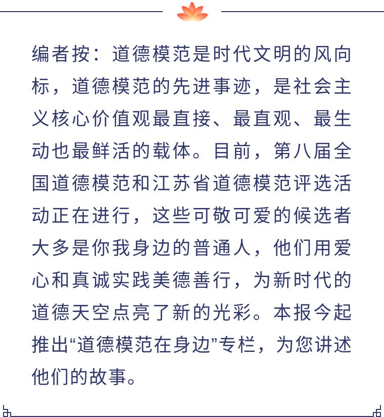 在第八屆全國道德模范和江蘇省道德模范候選人中,有這樣一群富有愛心的奉獻者,他們通過點點滴滴凡人善舉,讓扶困助弱這一傳統美德在新時代熠熠閃光,點燃更多人的心火,讓真情遍灑江蘇大地。
