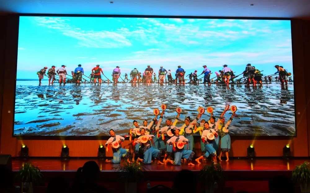 南漁村海之韻舞蹈隊帶來舞蹈:《豐收漁鼓》。選送單位:洋口鎮南漁村黨委。