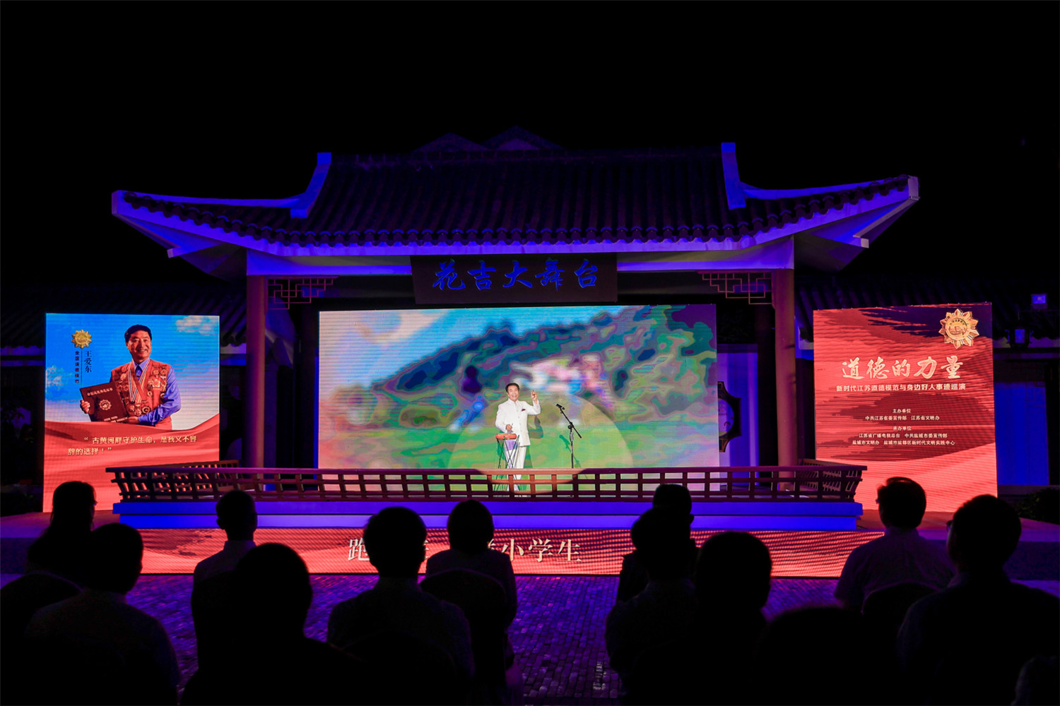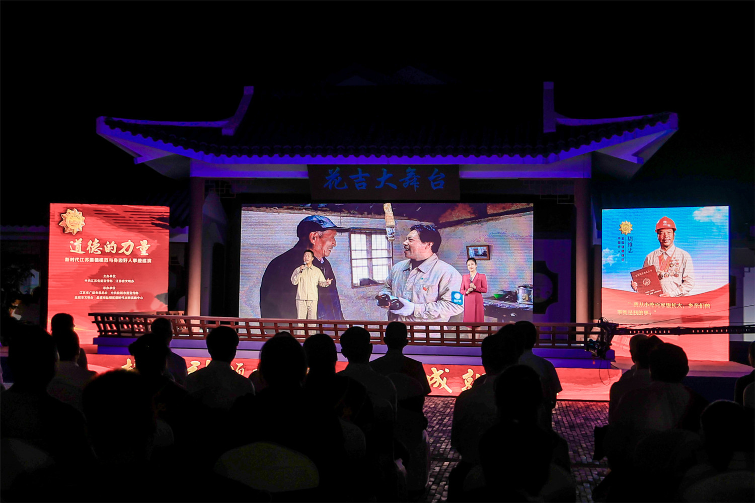 交匯點(diǎn)訊 8月24日晚,鹽城市鹽都區(qū)鹽瀆街道花吉村新時(shí)代文明實(shí)踐站前的露天廣場(chǎng)上,“花吉大舞臺(tái)”熱鬧非凡。趙亞夫、錢(qián)七虎、王愛(ài)東、周維忠……圍繞一串串閃亮的名字,舞臺(tái)上呈現(xiàn)一個(gè)個(gè)生動(dòng)故事,激蕩著人心。“道德的力量”——新時(shí)代江蘇道德模范與身邊好人事跡巡演,由此拉開(kāi)帷幕。