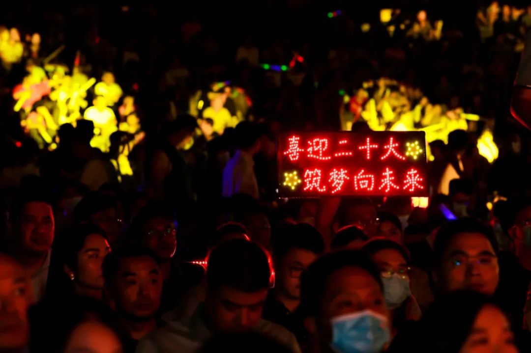 晚上7點半,演出正式開始。聞訊趕來的群眾把句容文化藝術中心南廣場的臺階坐了個滿滿當當。不少市民還打起了“喜迎二十大 筑夢向未來”“踐行公民道德 展示文明形象”的燈牌,擔當起現場的“最強氣氛組”,用實際行動體現了“追星當追這樣的星”。