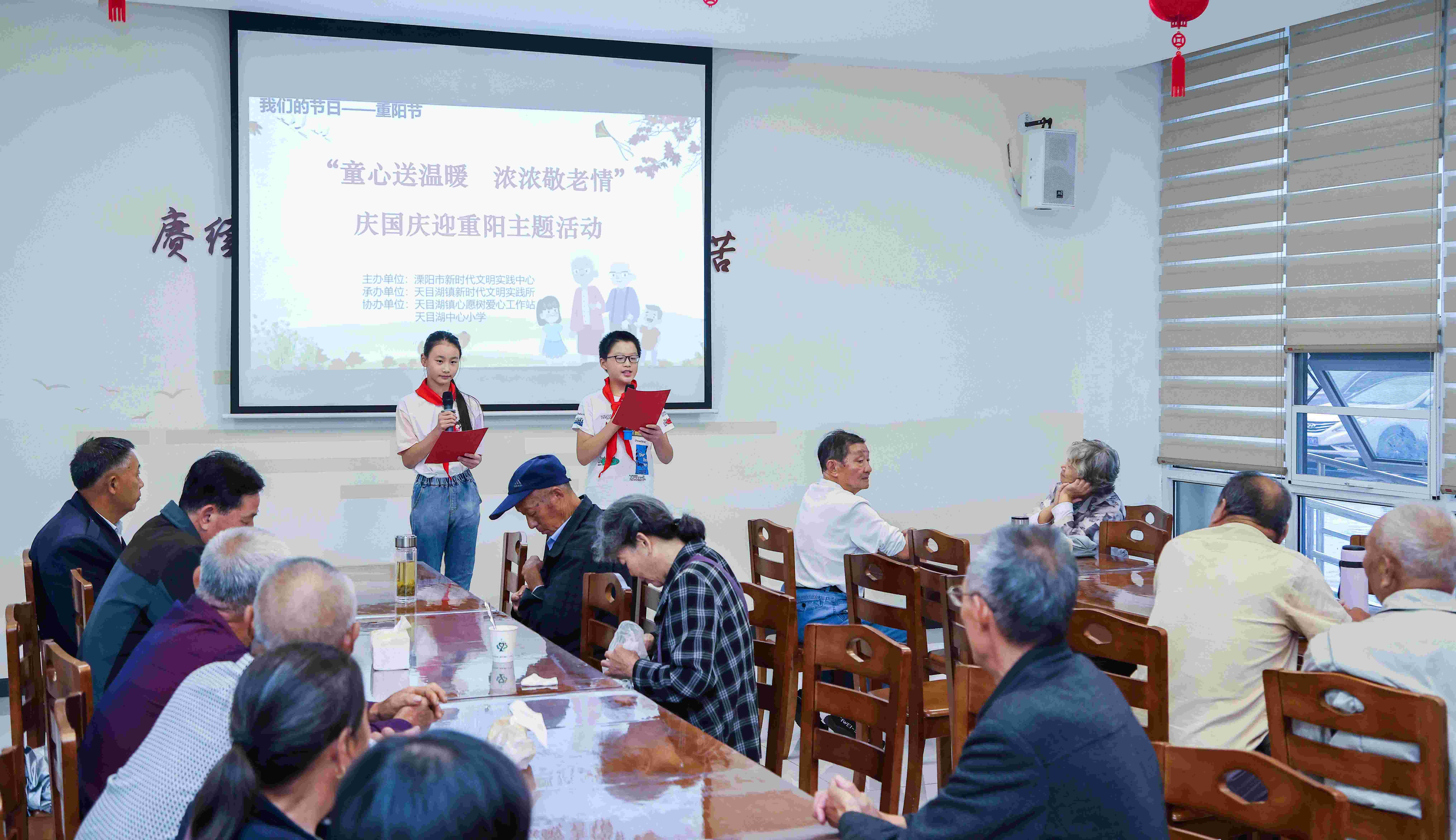 當國慶節遇見重陽節,愛國與感恩撞了滿懷。雙節來臨之際,常州溧陽市天目湖中心小學紅領巾志愿者走進天目湖鎮如意小食堂開展志愿服務活動。小志愿者的到來讓如意小食堂充滿了溫暖與童趣,孩子們為老人帶來了精彩的節目展示與暖心的送餐服務。數十位老人笑臉如花。