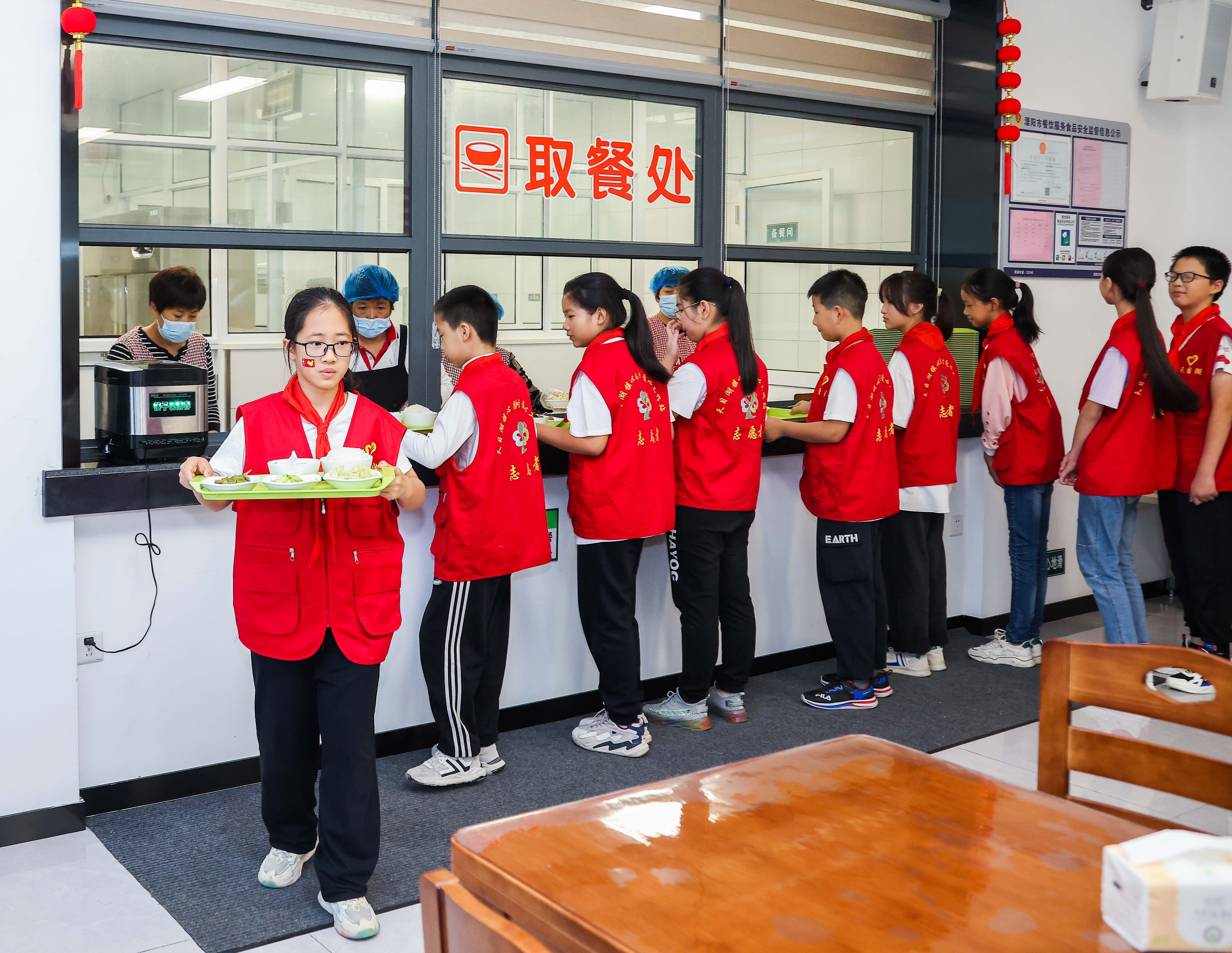 小志愿者小心翼翼為老人愛心服務。一個個端好手中的餐盤,為爺爺奶奶送上營養豐富的午餐,愿爺爺奶奶重陽安康、幸福快樂到永久。老人們雙手接過餐盤,連連夸贊。