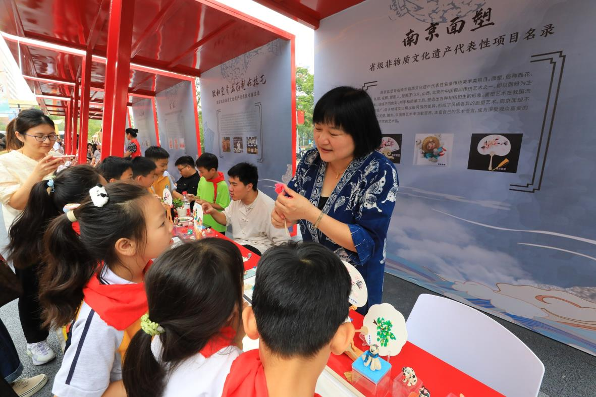 非遺拾珠,喚醒鄉愁記憶。泰興市新時代文明實踐中心的廣場上人頭攢動、熱鬧非凡,“特色非遺市集”區的非遺傳承人們輪番展示30余項傳統非遺技藝,吸引了眾多群眾的駐足圍觀。戴上一個“徐州香包”,在歡樂祥和中寄托家庭和美、豐衣足食的美好愿望;買上一緞“蘇繡”,在指尖輕撫中零距離感受“古今中華第一繡”的魅力華彩;嘗上一口“黃橋燒餅”,在香酥可口中追憶戰火紛飛的魚水情深……這些古老非遺承載的,不僅僅是一段情懷記憶,更是體驗傳統文化交融現代文明的最好方式。“小時候跟著父母跑船,順著河流的腳步,見過不少傳統的技藝,今天帶著自己的孩子再次與它們相逢,感覺很有意義,希望孩子們能夠將這些‘老手藝’傳承下去,讓我們的文化源遠流長。”市民張先生給孩子“淘”了一個“孤山泥狗子”,孩子鼓起腮幫,喚起了父輩的鄉愁。