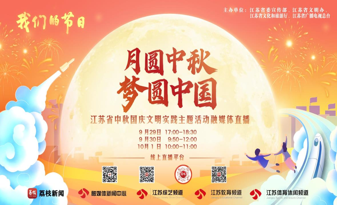 據悉,在全省活動期間,還將連續推出“月圓中秋 夢圓中國”融媒體直播活動,包括“我們的節日·中秋”融媒體直播、“盛世中華 大美中國”融媒體直播、“同心共慶 祝福中國”融媒體直播等。活動將通過駐點直播、現場連線、嘉賓對談、實景VCR、互動問答等多樣態的形式,全景呈現江蘇各地在中秋、烈士紀念日、國慶期間舉辦的主題文明實踐活動,生動展現全省人民共享團圓時、共圓中國夢的幸福時刻和美好愿景。