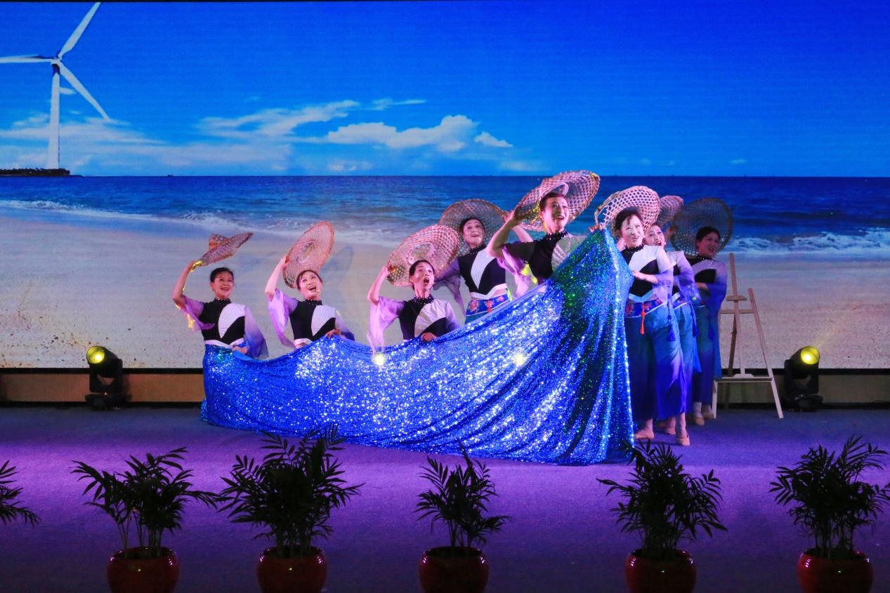 “鮮嫩嫩的漁歌爽歪歪的嗨”……女聲表演唱《鮮嫩嫩的漁歌爽歪歪的嗨》節目里,文化館舞蹈隊的隊員們手拿斗笠,在大屏的藍色波濤背景下,演繹著如東人民“靠海吃海”不畏辛勞、迎難而上的美好品質。“我們在內容編排上,都是選取的身邊人、身邊事,希望以更接地氣的方式展現我們如東人的生活狀態。”“村晚”導演曹俊祥告訴記者,《鮮嫩嫩的漁歌爽歪歪的嗨》想表達如東人生在海邊、長在海邊,用自己的智慧和汗水,利用海洋資源,發揮海洋優勢,在海產品生產,海洋旅游方面,不斷探索,不斷收獲的幸福場景。