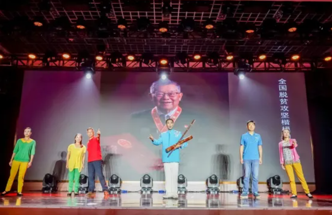演出開始前,在觀眾熱烈的掌聲中,全國脫貧攻堅楷模、全國道德模范趙亞夫等鎮江市和江蘇海事系統的先進典型代表步入現場,海事青年為他們獻上鮮花。