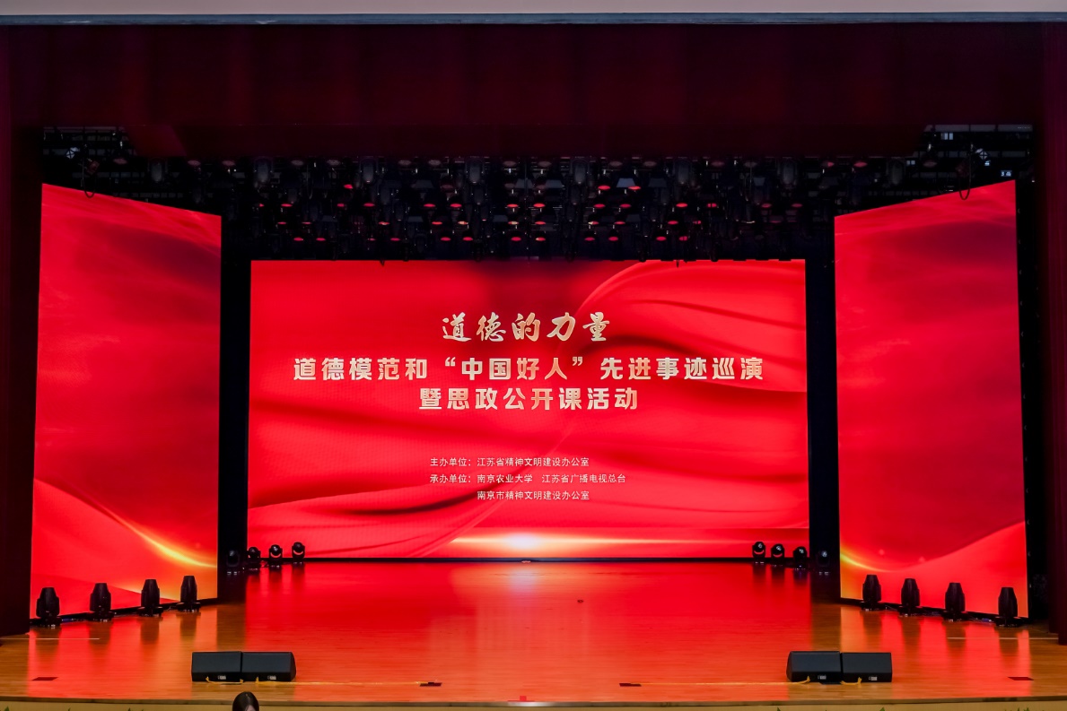 交匯點訊 這是一場別開生面的演出,也是堂意義深遠的思政課,13個節目、120分鐘,還原了13位典型人物的故事,引得滿堂掌聲。10月29日晚,新啟用的南京農業大學濱江校區人頭攢動,大學生活動中心禮堂內氛圍熱烈,由江蘇省精神文明建設辦公室主辦,南京農業大學、江蘇省廣播電視總臺、南京市精神文明建設辦公室承辦的“道德的力量”——道德模范和“中國好人”先進事跡巡演暨思政公開課活動拉開帷幕。