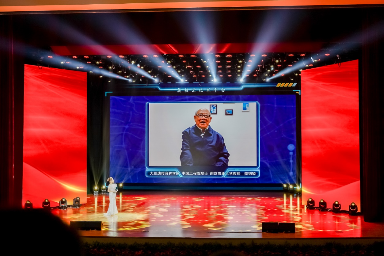 “祖國需要什么,我就研究什么!”短短12個字,濃縮了大豆遺傳育種學家、中國工程院院士、南京農業大學教授蓋鈞鎰60余載的執著追求。作為全國唯一研究大豆的院士,今年88歲的蓋鈞鎰,一直是同學們眼中指引他們前行的“愛豆爺爺”。“今天,我們的農業中仍有各種各樣的問題要去研究,任務很重。但你們面前,同樣也有非常廣闊的奮斗方向。”29日晚,雖因身體原因未到現場,但視頻連線另一端,蓋鈞鎰語重心長,“我們應有雄心,讓中國的農業站到世界前列!”以蓋鈞鎰為原型,情景劇《爺爺的“愛豆”》將科學家精神展現得淋漓盡致。