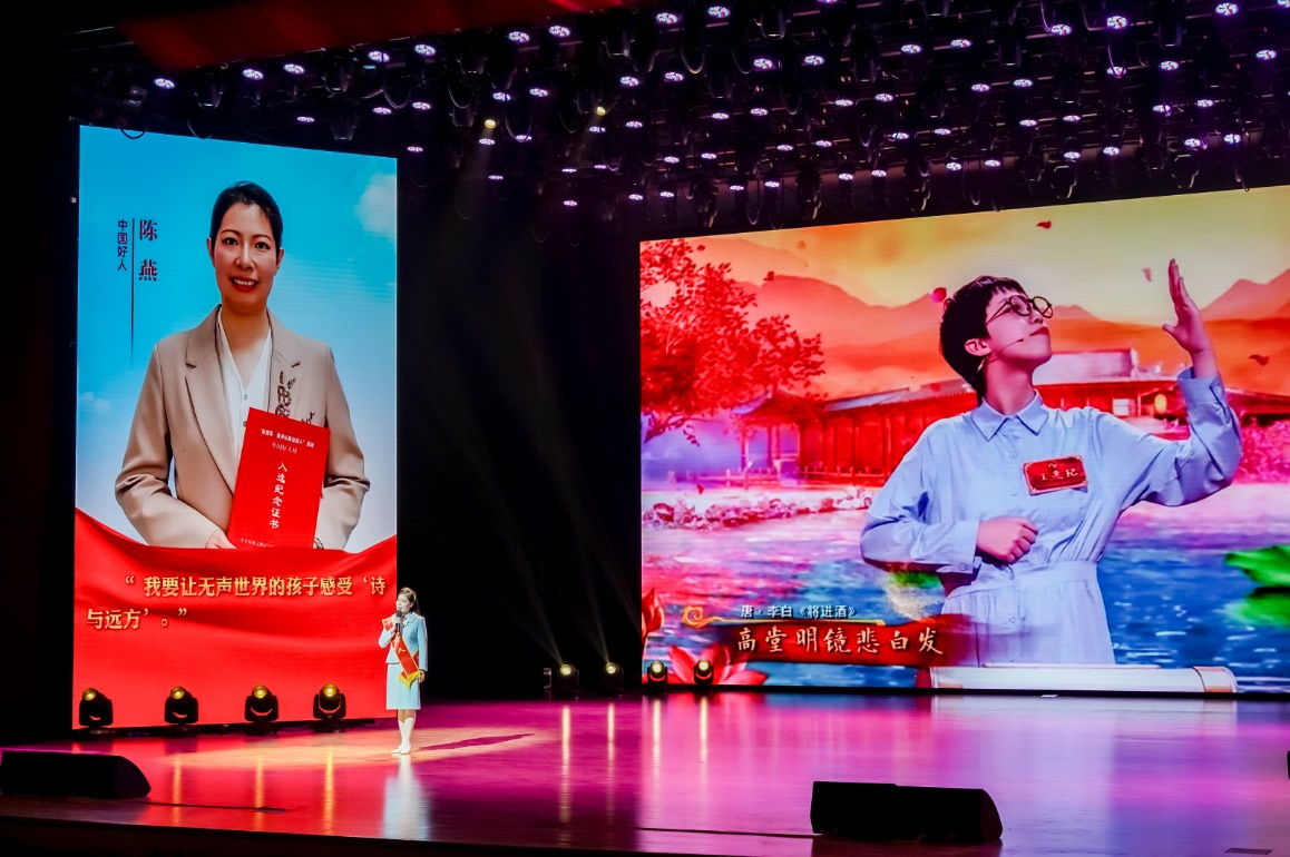 微光成炬,寫人生奇跡。舞臺上,燈光聚焦在南京市聾人學校教師陳燕身上。“為了讓聽障孩子感知詩詞節奏,我搬來鼓,讓學生用手觸摸地板,通過共振把握韻律。聽力健全孩子一天學會的,我們的孩子可能要三個月甚至半年。沒關系,那就用汗水告訴大家,我們能、我們行。漸漸地,孩子們的聲音越來越響亮整齊,動作也越發從容自信。經過層層選拔,他們最終走上央視舞臺,成為中國詩詞大會的特殊選手。”回首過往,陳燕一度哽咽。她說,面對鏡頭,她的學生瀟灑豪邁、感動全場,她卻在一旁看著,哭了又笑了。