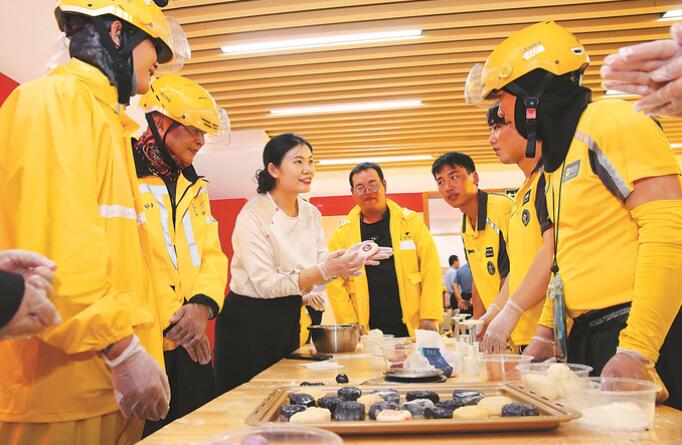送完一大早的第一批外賣,美團連云站騎手滕紹旭便來到附近的新時代文明實踐站歇腳,充電、加水、吃飯,接著又開始下一波送單。根據新就業群體的工作半徑、行駛路線和服務需求,連云區各級文明實踐陣地以共性服務和個性需求“雙重滿足”為目標打造暖“新”矩陣,就近提供一站式多功能服務,讓新就業群體感受“到站即到家”的溫暖。